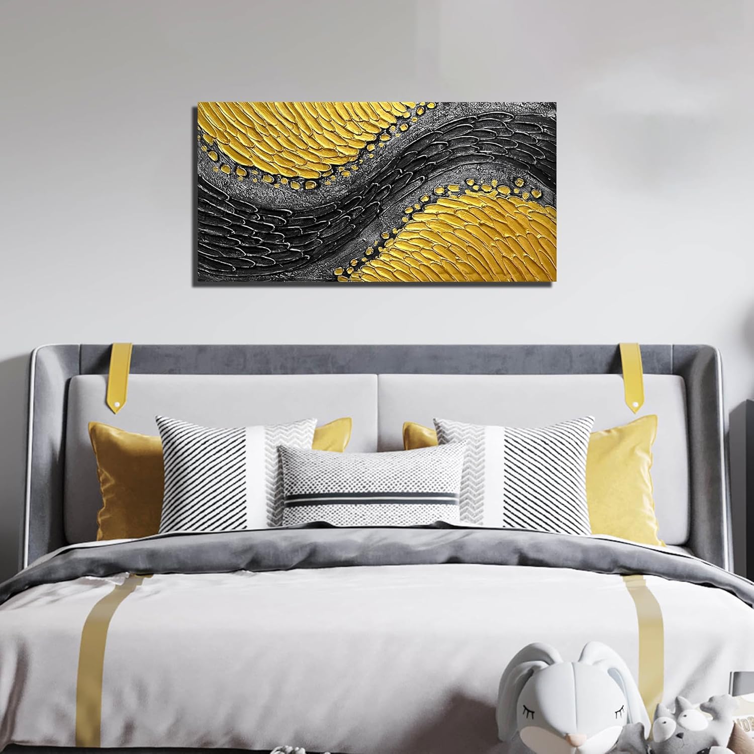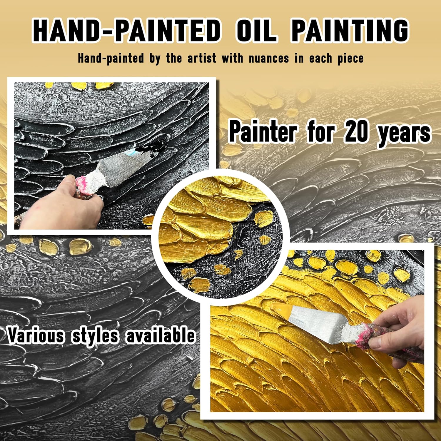 - 【Canvas Mural Size】theme "Black And Gold Abstract" The size is 20" x 40". Since each painting is hand-painted, the actual painting may differ slightly from the product image. Due to different monitor brands, the actual wall painting color may be slightly different from the product picture.