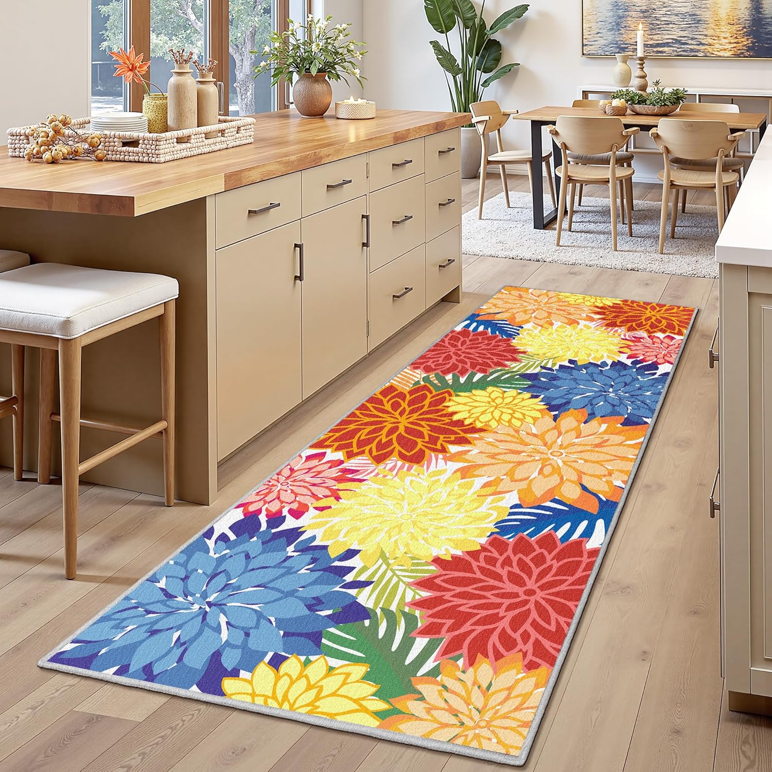 Area Rug 2x6 Washable Entry Rug Multicolored Tropical Botanical Modern Floral Indoor Kitchen Door Mat Entrance Carpet Non Slip for Bedroom Living Room, Porch