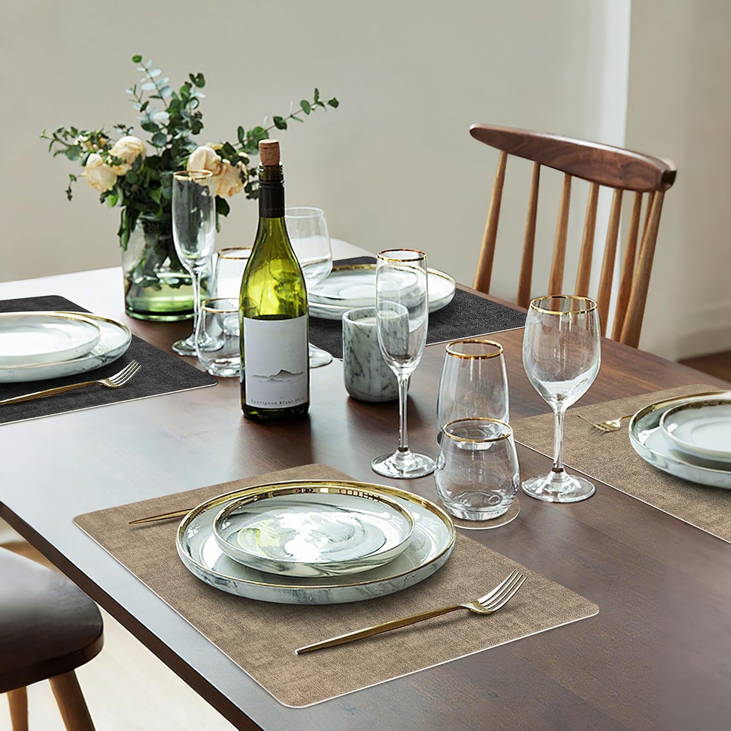 - SUITABLE FOR EVERY OCCASION: Our faux leather placemats are available in a wide range of fashionable colours, neutral colour design, simple and stylish, suitable for daily indoor and outdoor occasions, including restaurants, holiday parties, family gatherings, daily use and so on. Also a thoughtful choice for birthday gifts, Christmas gifts, housewarming, happy new year gift ideas