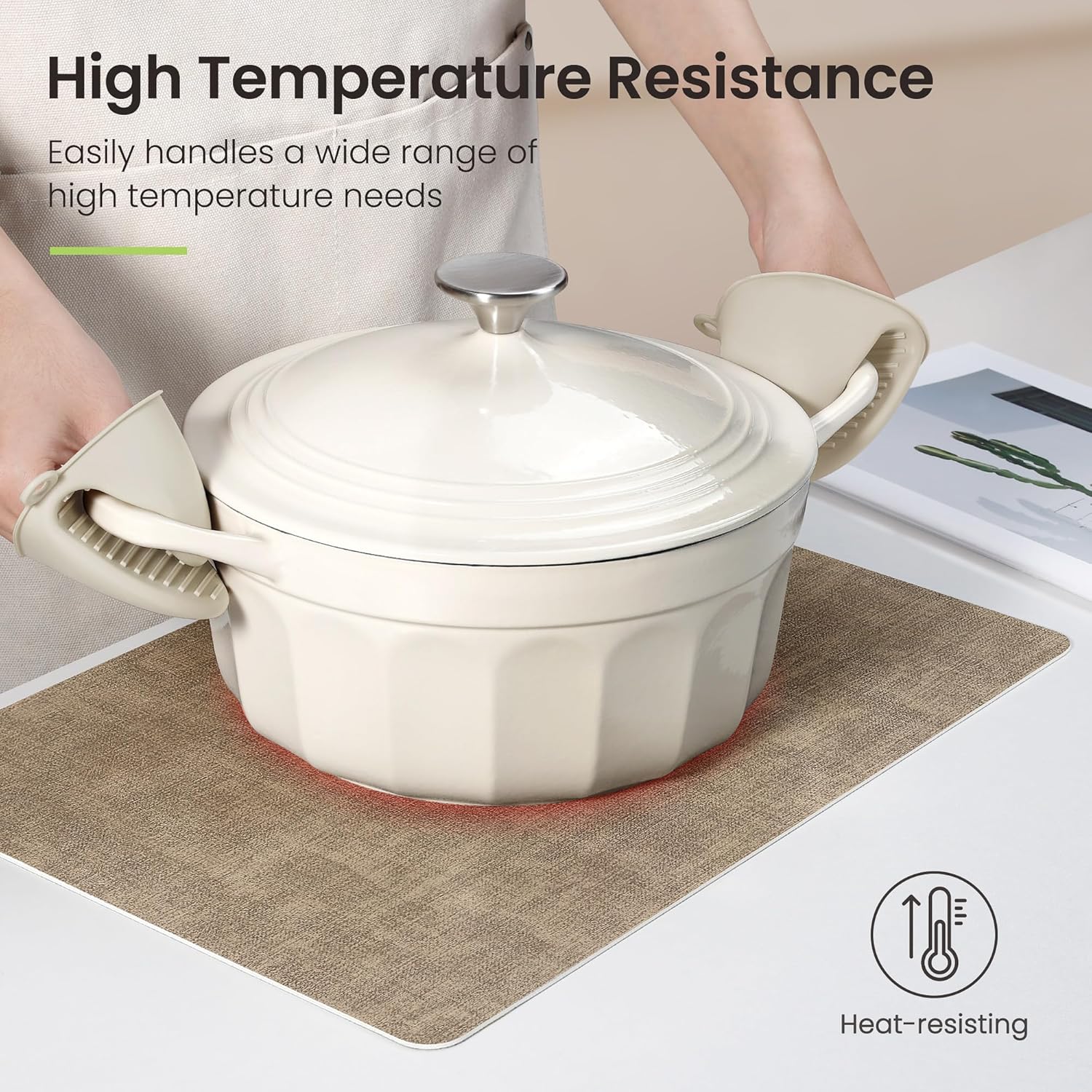 - PROTECT YOUR TABLE: Our placemats are 2 mm thick and can withstand the placement of hot items, protecting the table from hot plates and dishes. Their thickness gives them excellent water and stain resistance, protecting the table's cleanliness and integrity and enhancing your dining experience