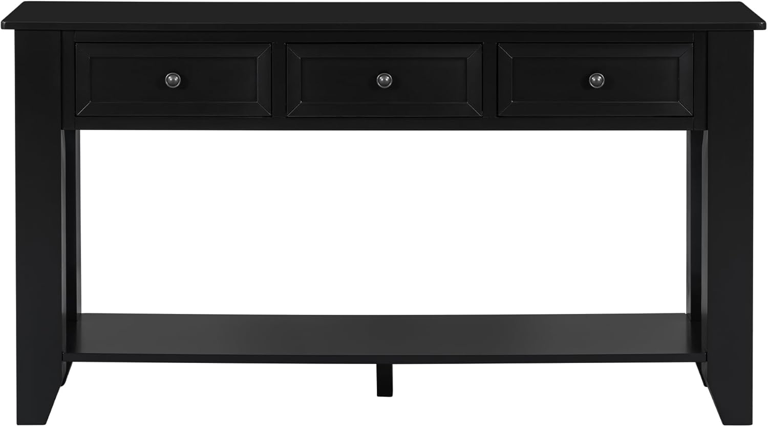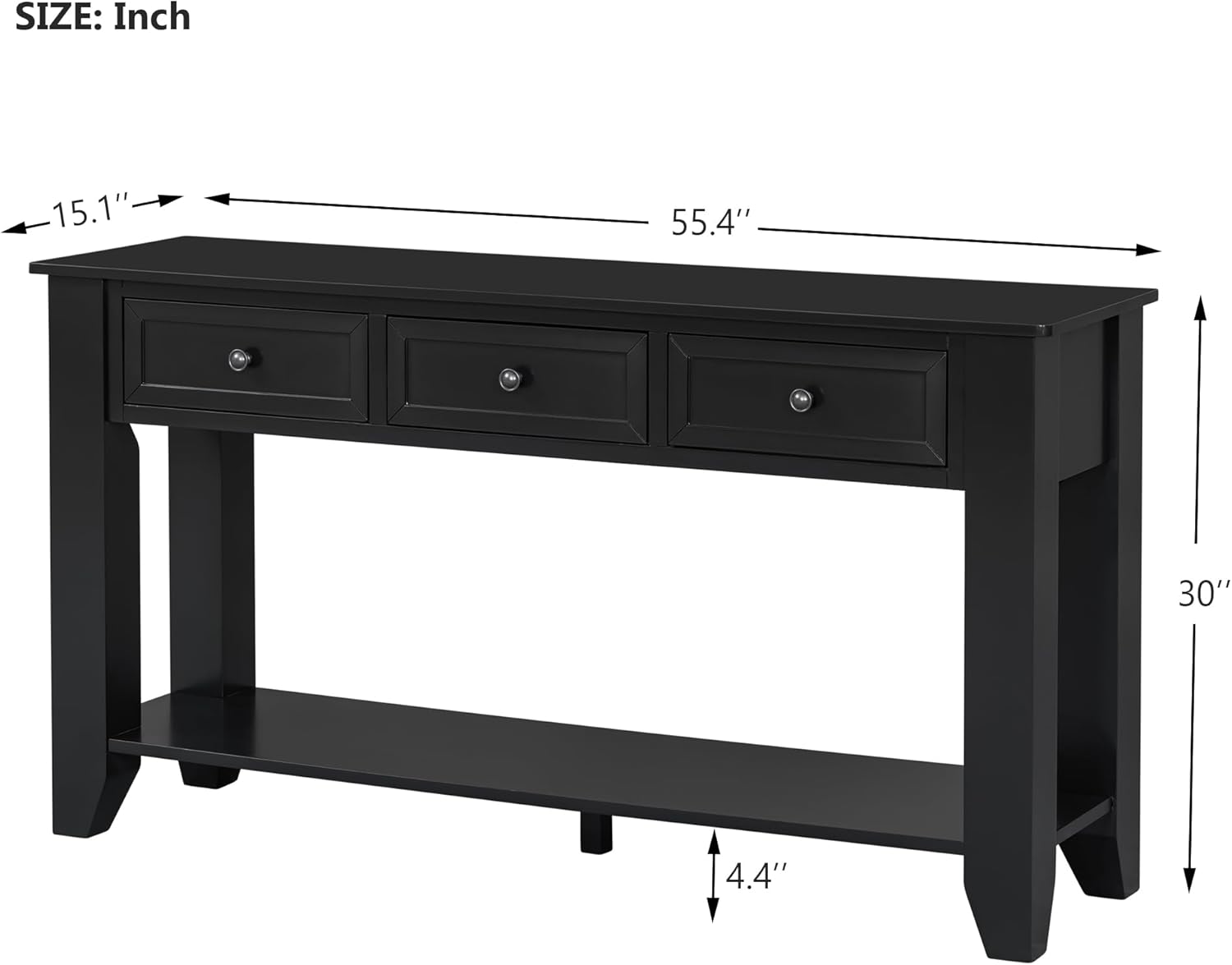 Farmhouse Modern Console Table 55.4-Inch Entryway Sofa Table with Drawers & Storage Shelf for Living Room Hallway Entrance, Black