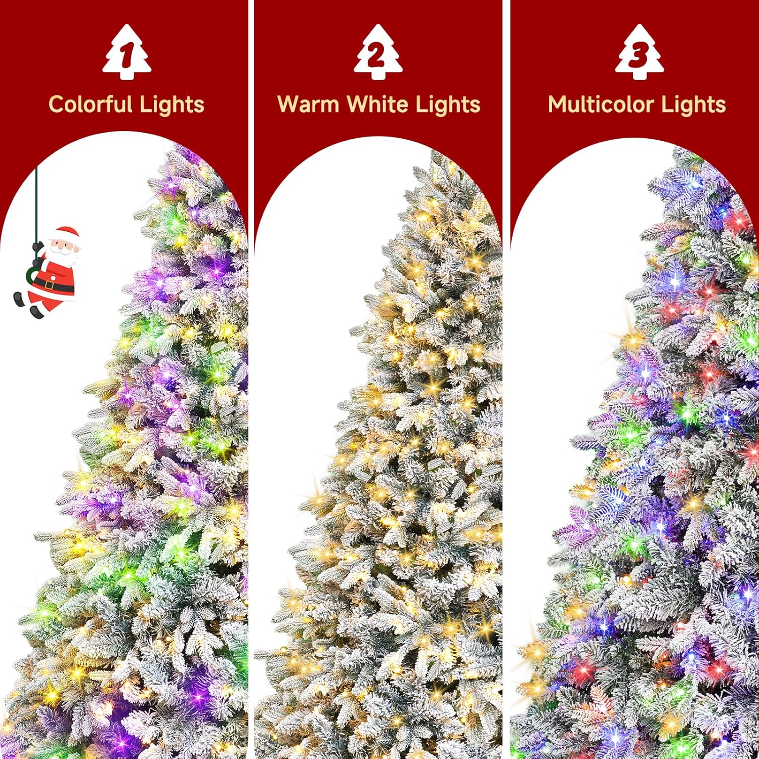 - Multi-Color LED Lights with Timer & Dimmer Remote – The prelit christmas tree enjoy 470+ energy-efficient LED lights in vibrant multi-color or warm white options. The remote control allows you to set a 2/4/6/8-hour timer, adjust brightness, and switch between 8 lighting effects (Steady on, Twinkle, Color Lights Steady on, Fast/Slow Flash, Chasing flash, Slow fade, Steady on, Repeating.) for the perfect holiday ambiance.