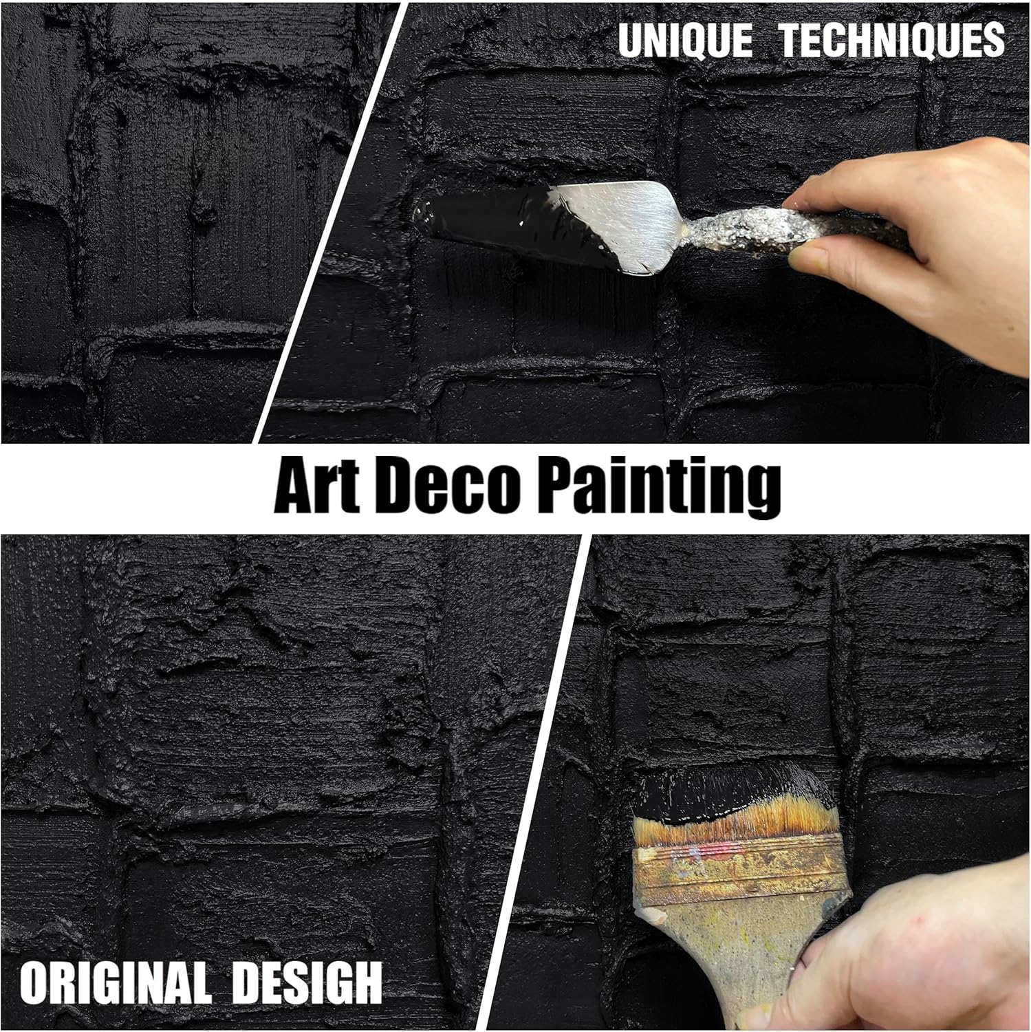 - 【Canvas Mural Size】Titled "Black Abstract" The Size is 40" x 20" Since each painting is hand-painted, the actual painting may differ slightly from the product image. Due to different monitor brands, the actual wall painting color may be slightly different from the product picture.