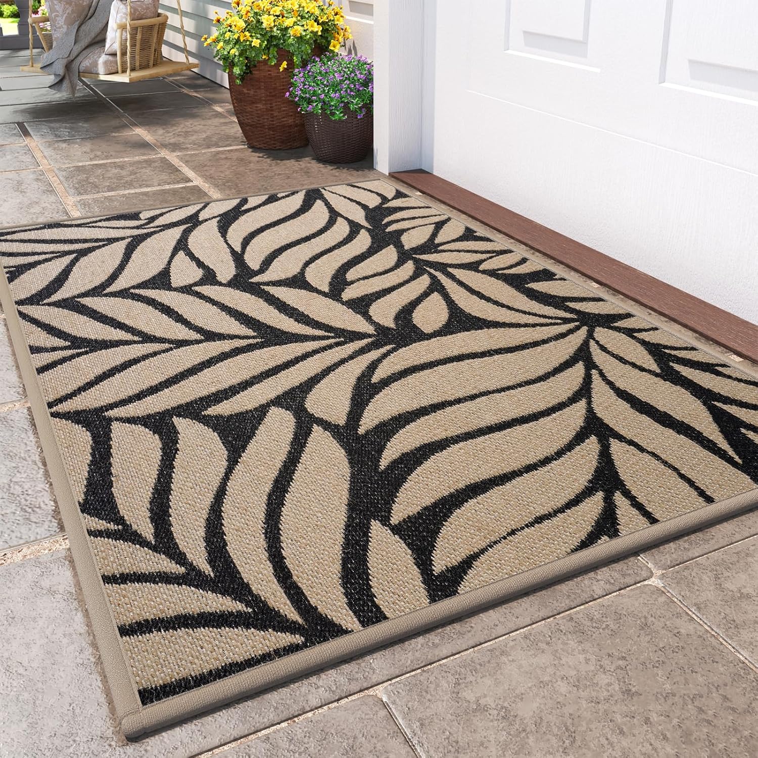 - 【Rugged and Sturdy 】: The surface of this QiCaiJia water resistant outdoor mat is made of high-quality woven flax, which is designed to be sturdy, strong and flexible.