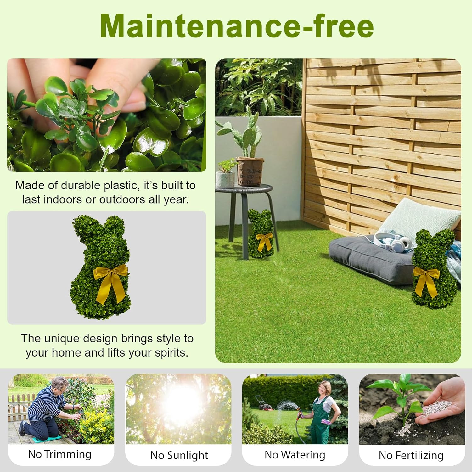 2 Pcs Artificial Bunny Shaped Topiary Trees, Artificial Green Boxwood Bunny Decorations with Gold Bow, Perfect for Indoor & Outdoor Front Porch, Easter& Garden Decor (Bunny Tree Without Base)