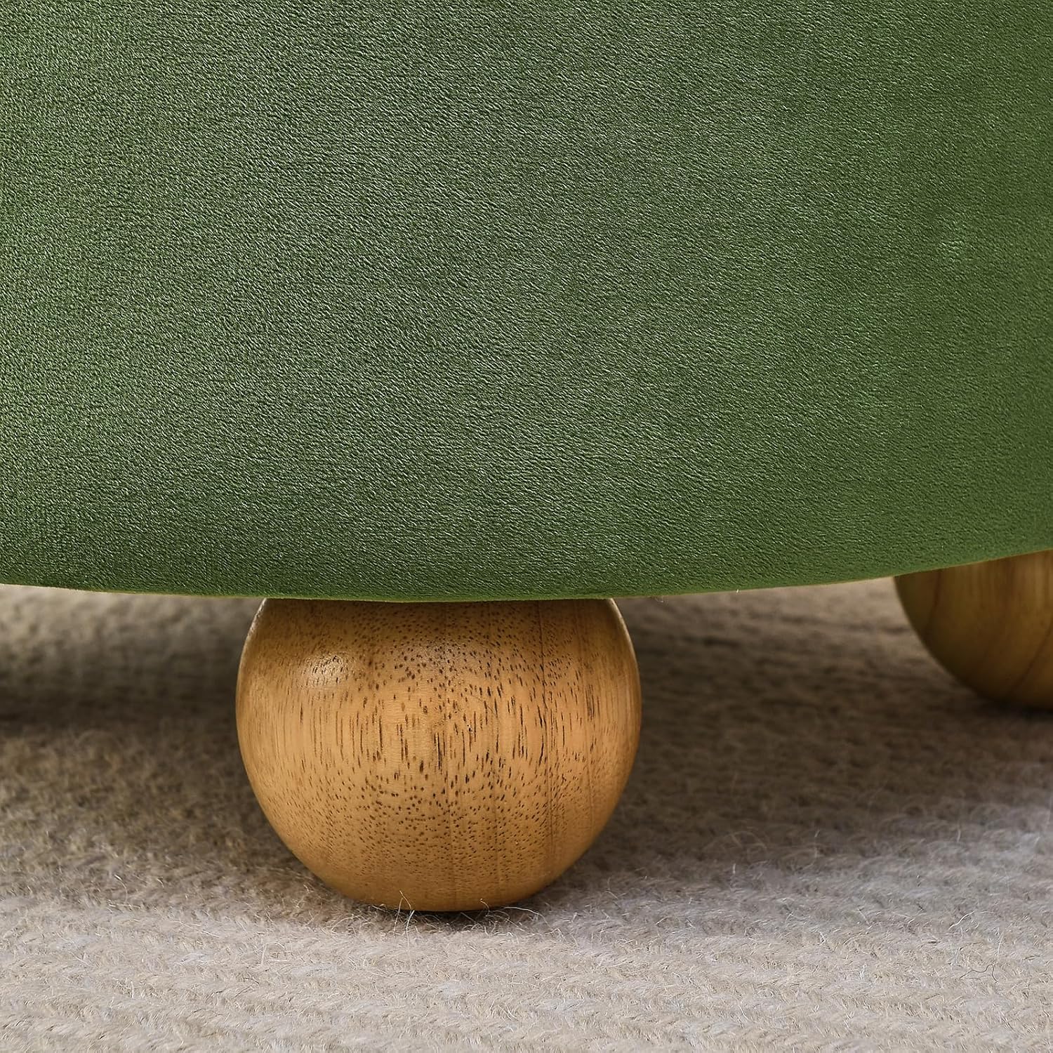Furniliving Upholstered Button Tufted Round Ottoman, Velvet Storage Ottomans Round, Removable Lid Convenient Footstools, Bedroom Ottoman with Storage for Vanity, Living Room, Green
