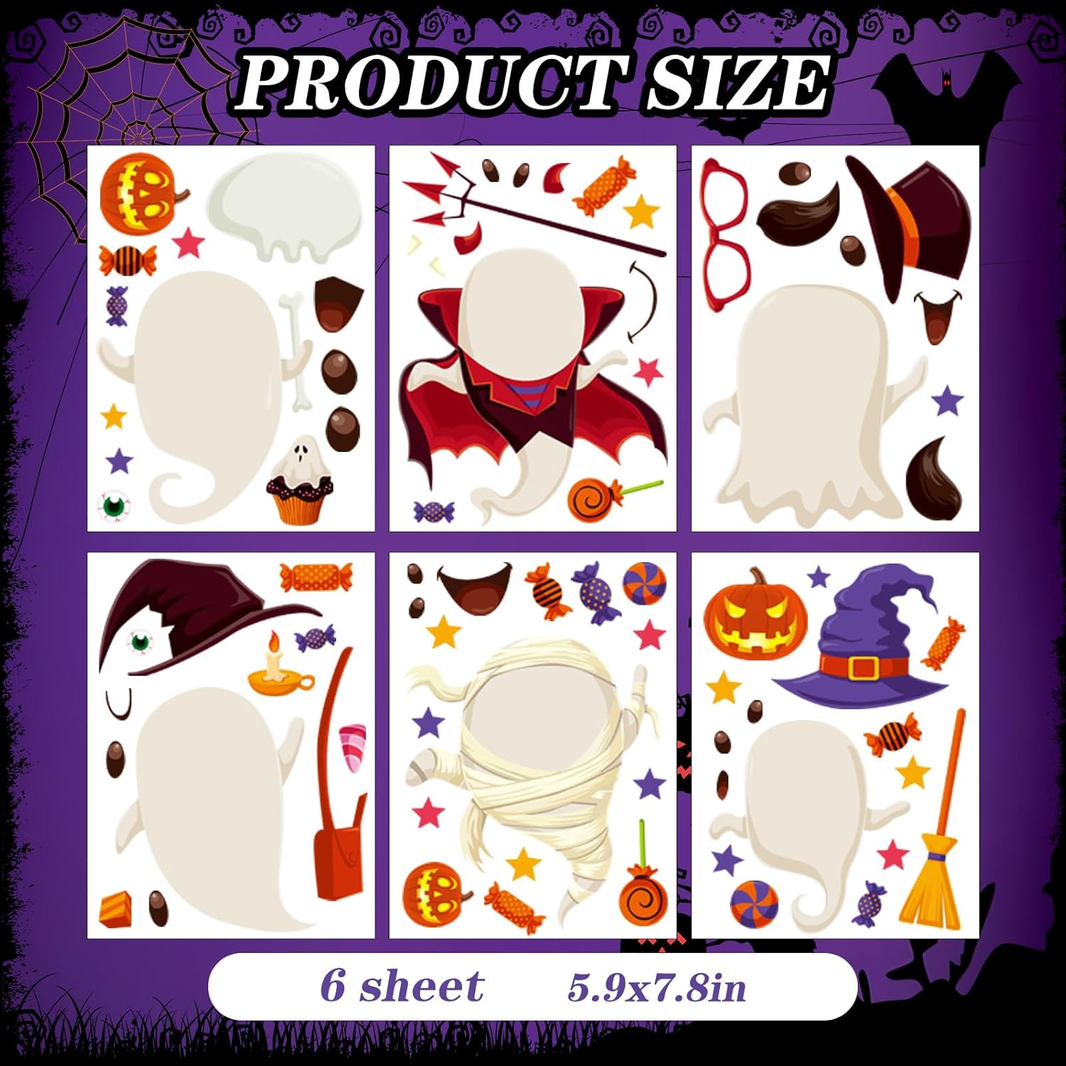 - Halloween Window Clings: You will get 6 Sheet 5.9inch *7.8inch Halloween window stickers, including cute Halloween popular elements, featuring ghosts and pumpkins in vintage-style designs, sufficient quantity to meet your decoration needs for Halloween.