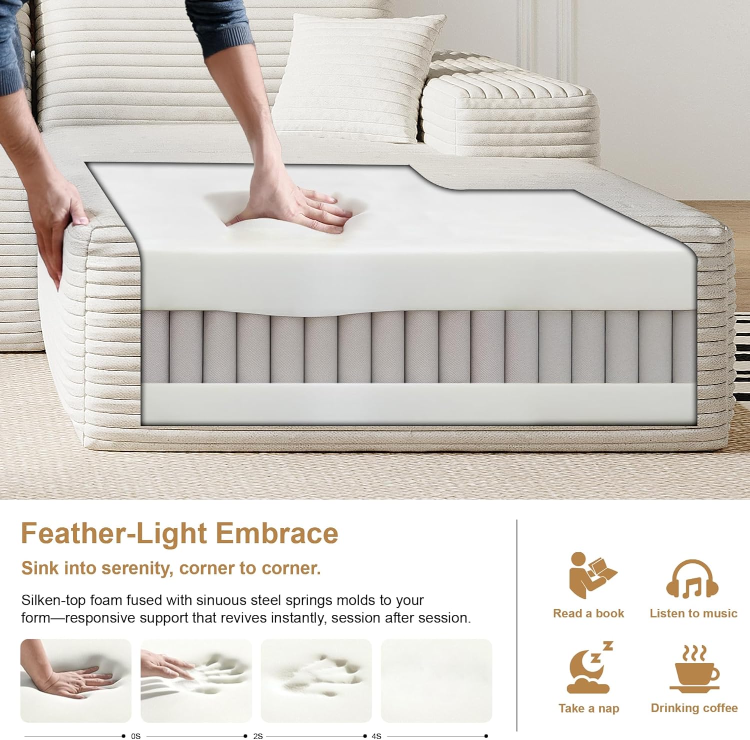 136" Sectional Couches for Living Room Modern Modular Sofa with L-Shape Couchs Upholstered Boneless Couch Deep Seat Sectional Couch with Chaise (White, Right Facing Chaise+3Seaters+Ottoman)