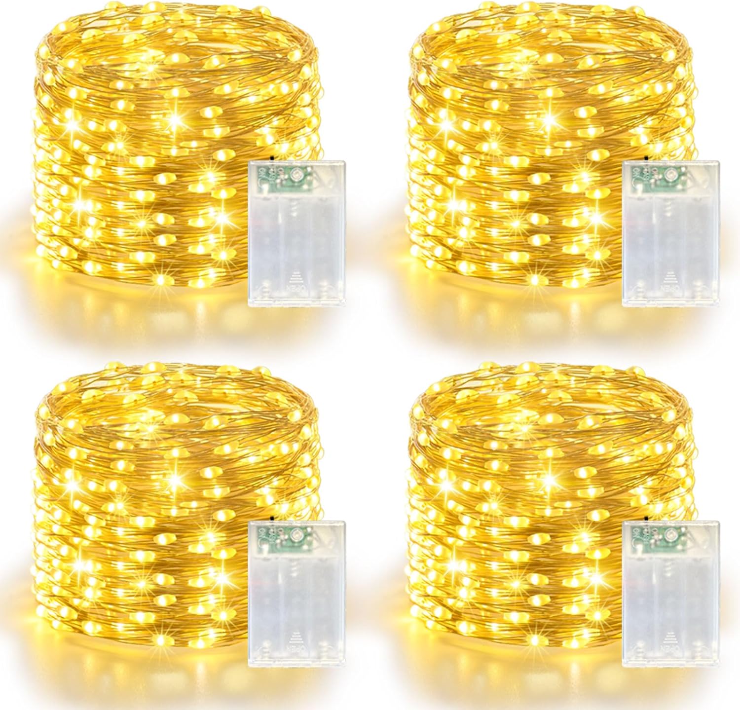 - Ultra-Bright Fairy Lights Battery Operated: Each pack includes 4 separate copper wire fairy lights, each featuring 60 brilliant LED bulbs, for a total length of 20FT. Effortlessly illuminate and decorate multiple areas like bedrooms, bookshelves, dining table centers, balconies, patios, and porches—instantly adding a warm, cozy glow to your holiday parties or daily home ambiance.