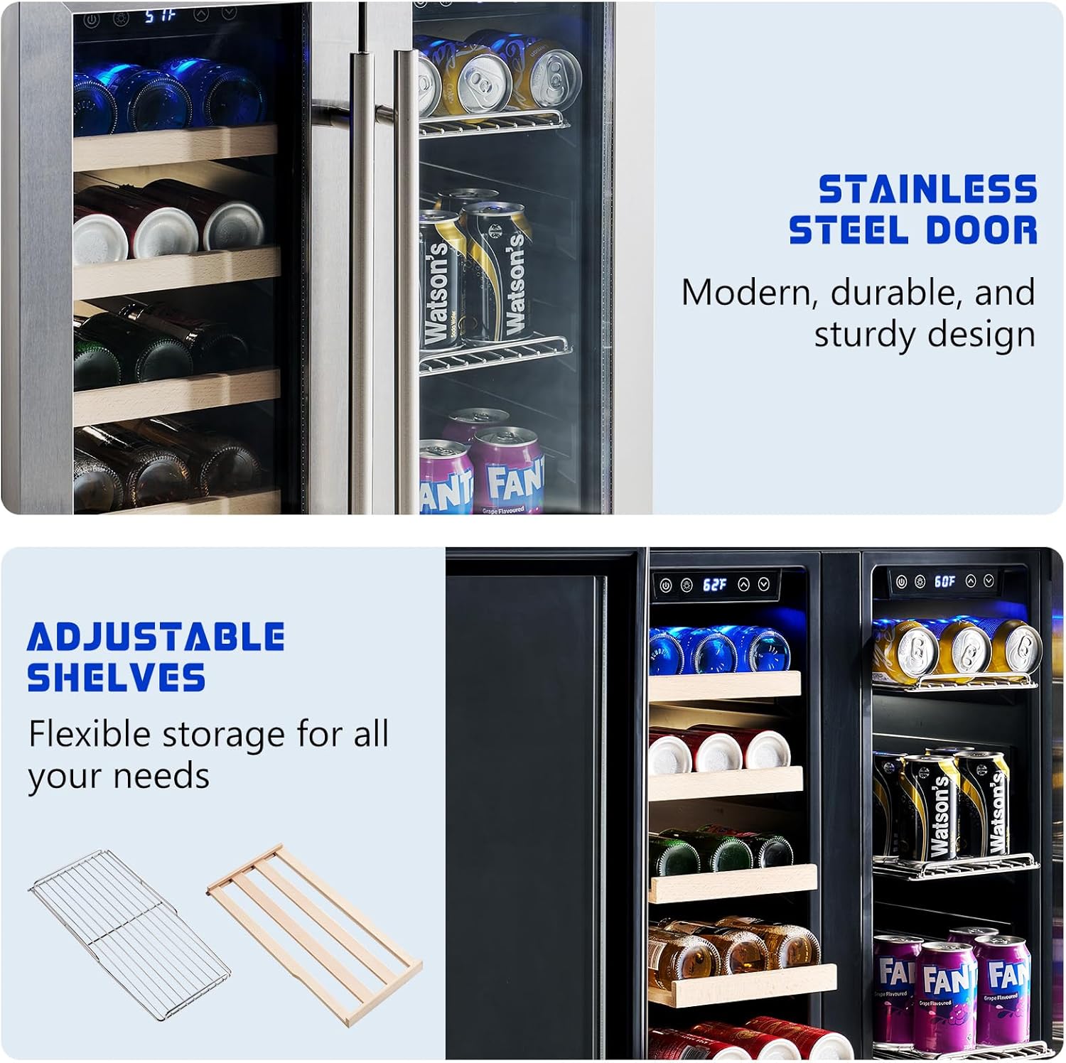 Albott Beverage Refrigerator - 24-Inch Dual Zone Cooler with Glass Door, Freestanding/Under Counter Wine and Beer Fridge, Holds 20 Bottles & 78 Cans, Ideal for Kitchen, Bar, Office, 34-64℉ & 41-68℉