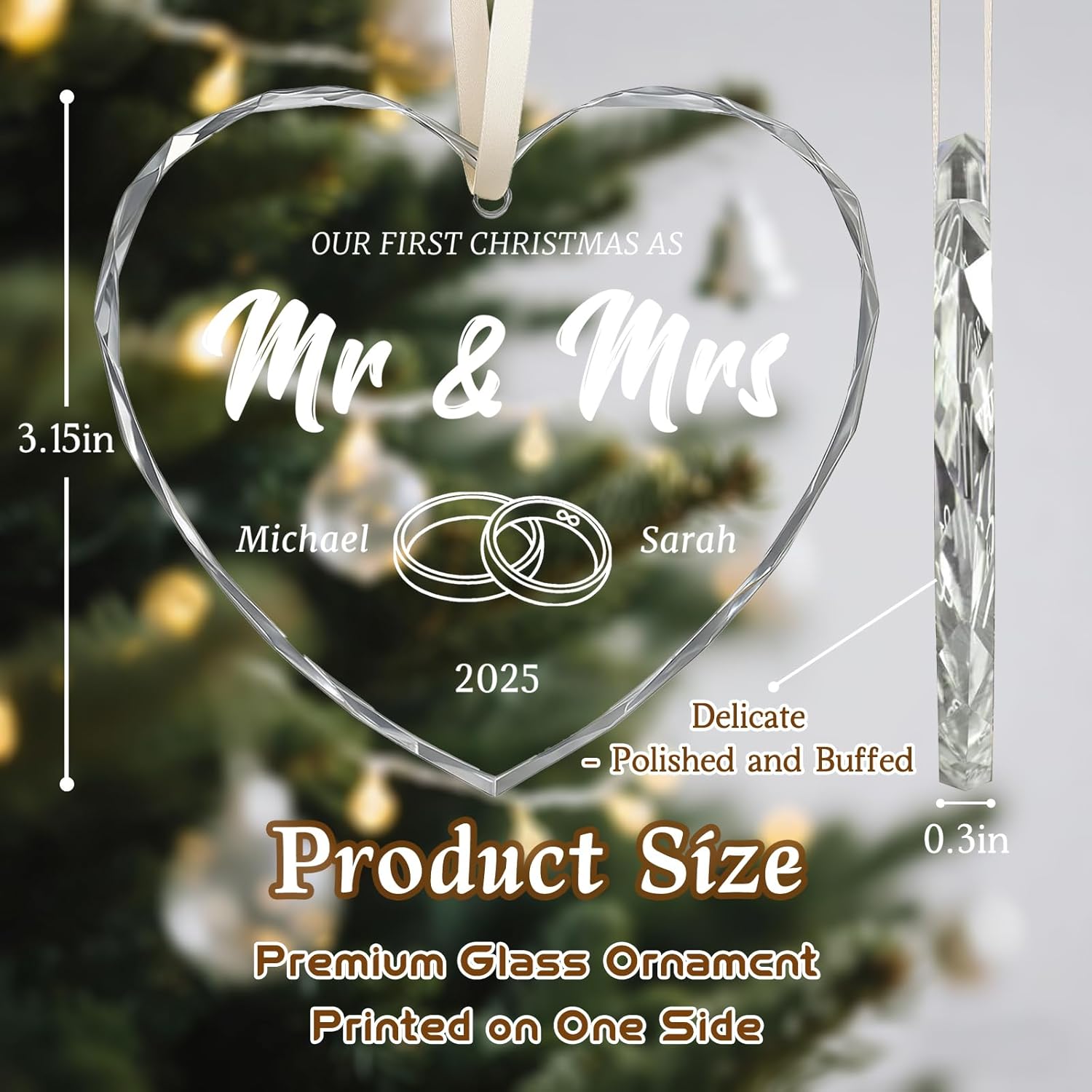 First Christmas Married Ornament 2025, Custom Wedding Crystal Glass Ornament with Photo, Name or Date, Personalized Wedding or Bridal Shower Gifts for Newlyweds