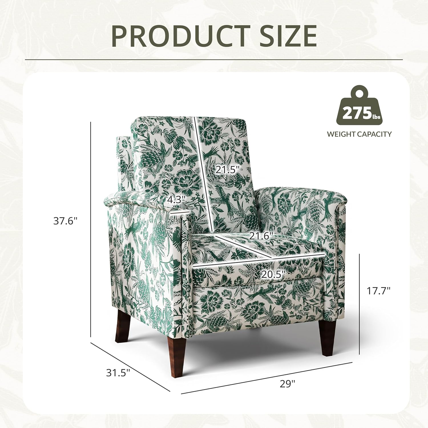 Floral Accent Chair, High Back Upholstered Armchair with Solid Wooden Legs, Padded Armrest and Removable Comfortable Cushioned Seat Single Sofa for Living Room, Bedroom, Green